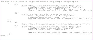 You can pull in images from your blog... from your shop and link them out using the steps we just used. OR... you can create an image and upload it to your website (If you don't have one you need to get one for STEP 2 (photo sharing sites DON'T like you using their sites to upload for websites so it's best to use your own web service. Get the url for your images and replace the img src"http://team.etsy.com/images/downloads/buttons/findme.jpg" with your images url and then replace the link part with whatever you choose to link it to. This Adds so much customization to your page in just a simple step.